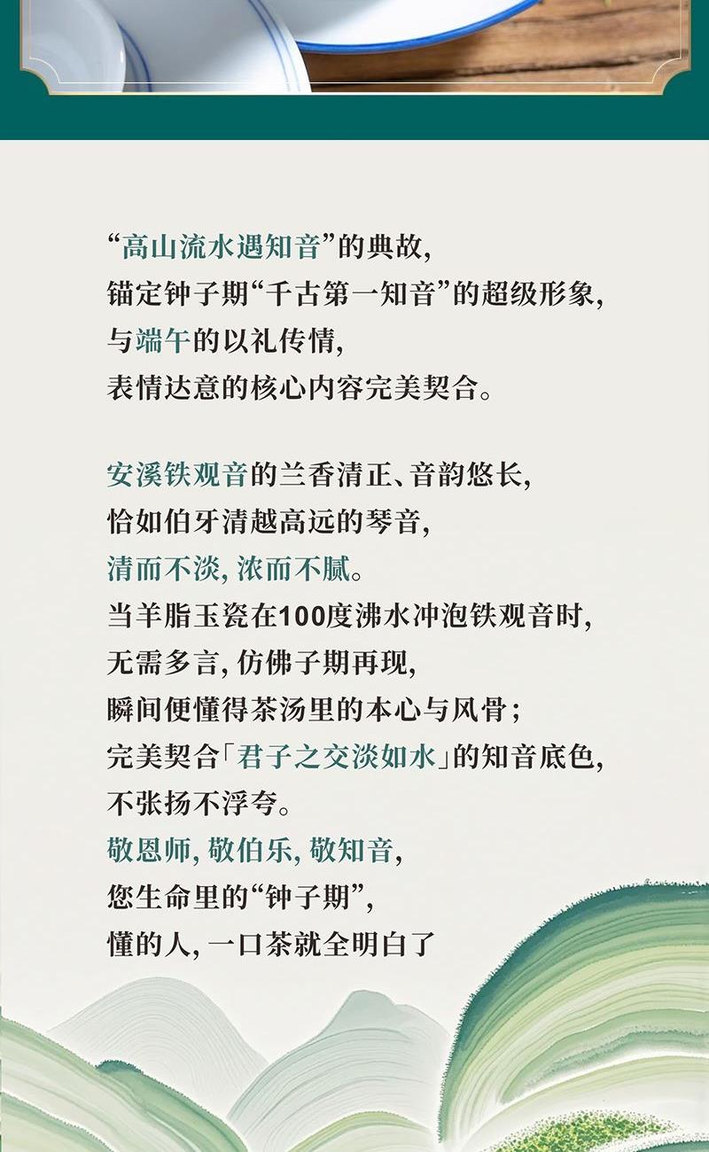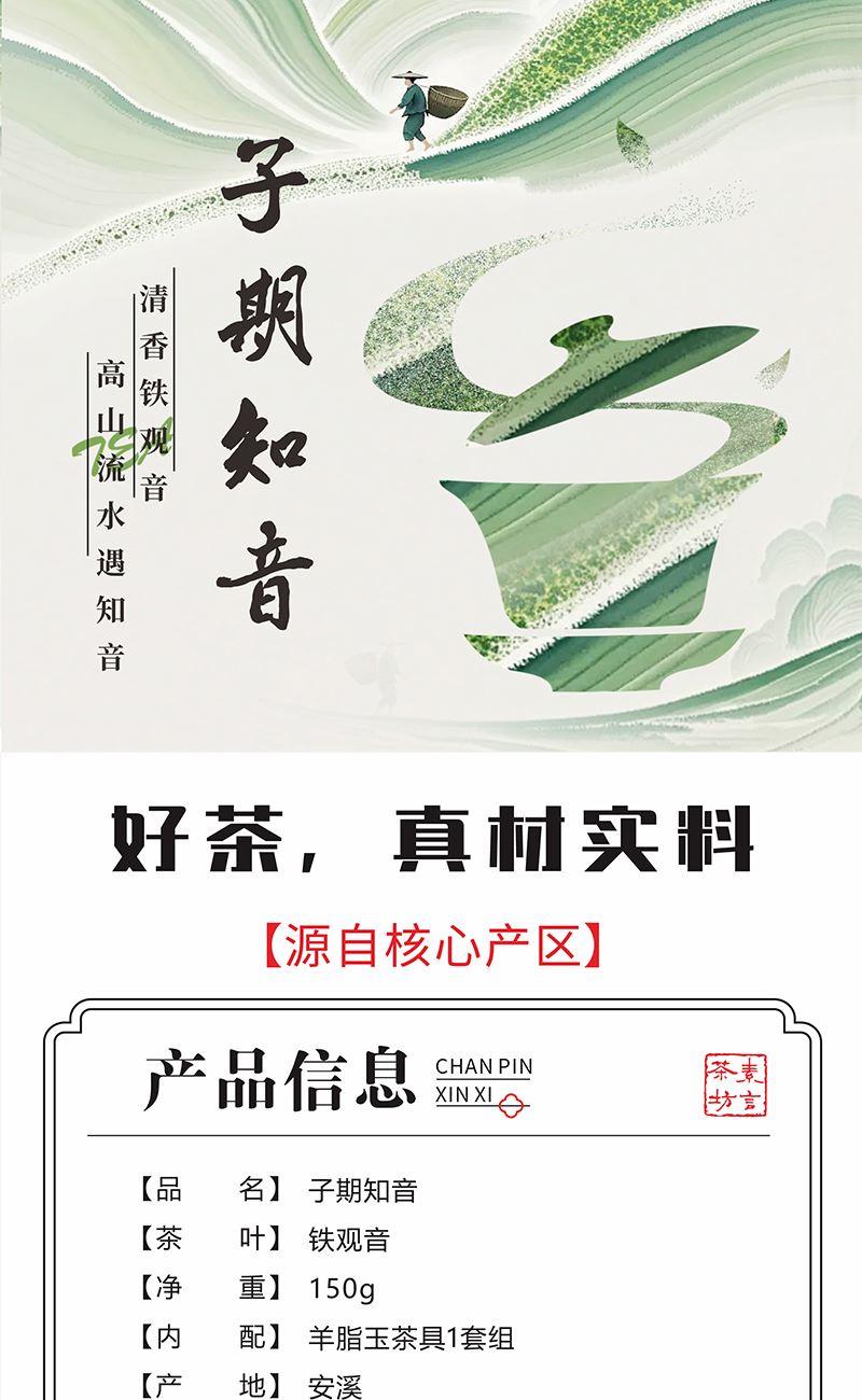 【原料】铁观音 【净重】150克 【产地】安溪 【内配】羊脂玉茶具1套组