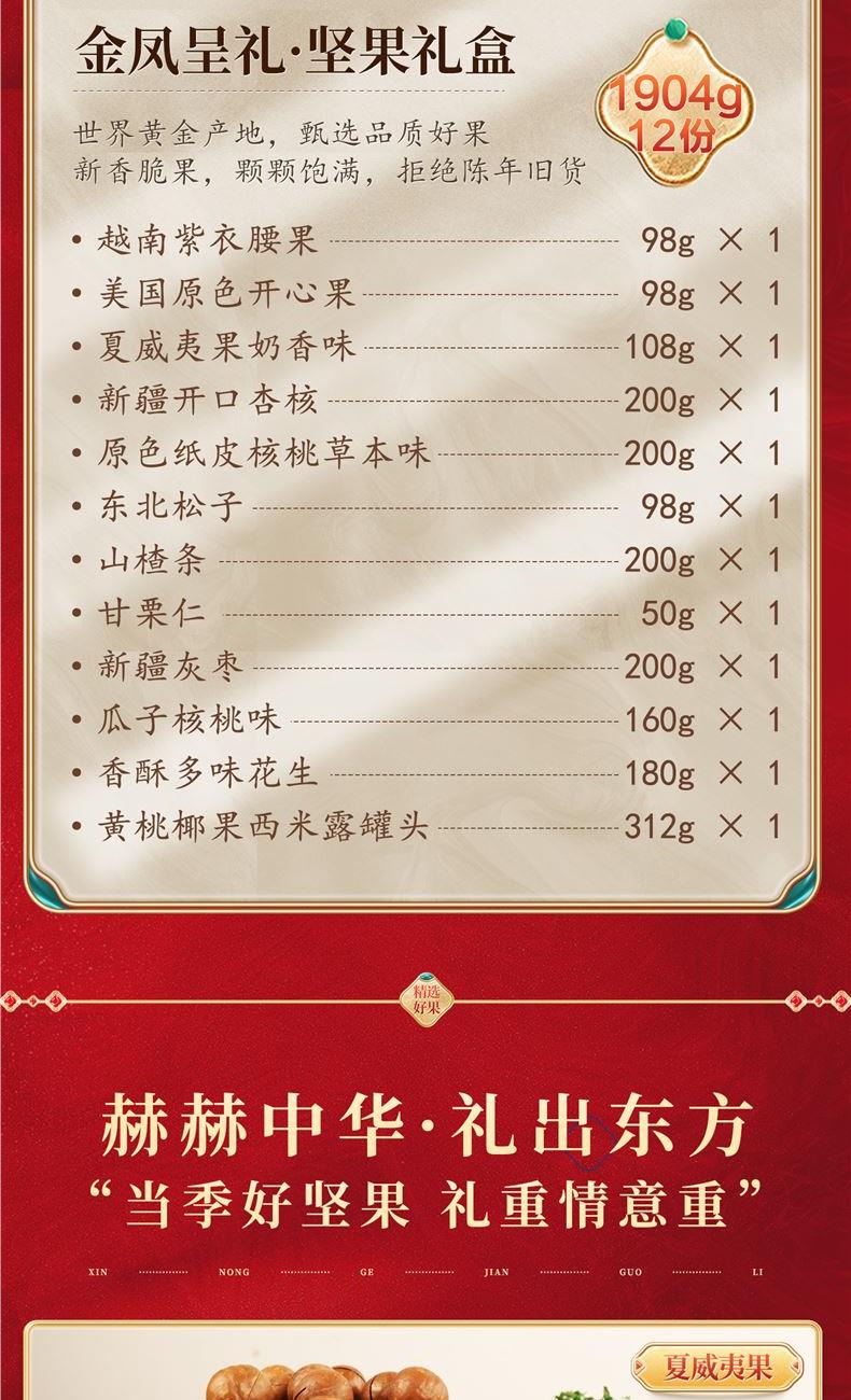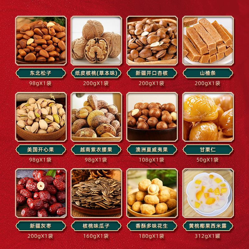【新农哥】越南紫衣腰果98g*1袋 【新农哥】美国原色开心果原味98g*1袋 【新农哥】夏威夷果奶香味108g*1袋 【新农哥】新疆开口杏核200g*1袋 【新农哥】原色纸皮核桃草本味200g*1袋 【新农哥】东北松子98g*1袋 【新农哥】山楂条200g*1袋 【新农哥】甘栗仁50g*1袋 【新农哥】新疆灰枣200g*1袋 【新农哥】瓜子核桃味160g*1袋 【新农哥】香酥多味花生180g*1袋 【新农哥】黄桃椰果西米露罐头312g*1罐