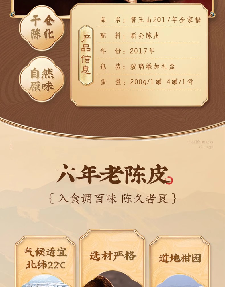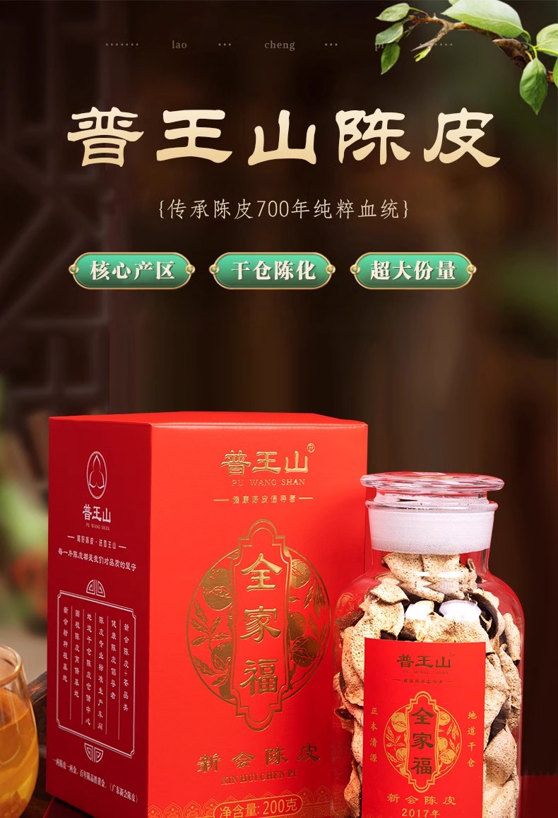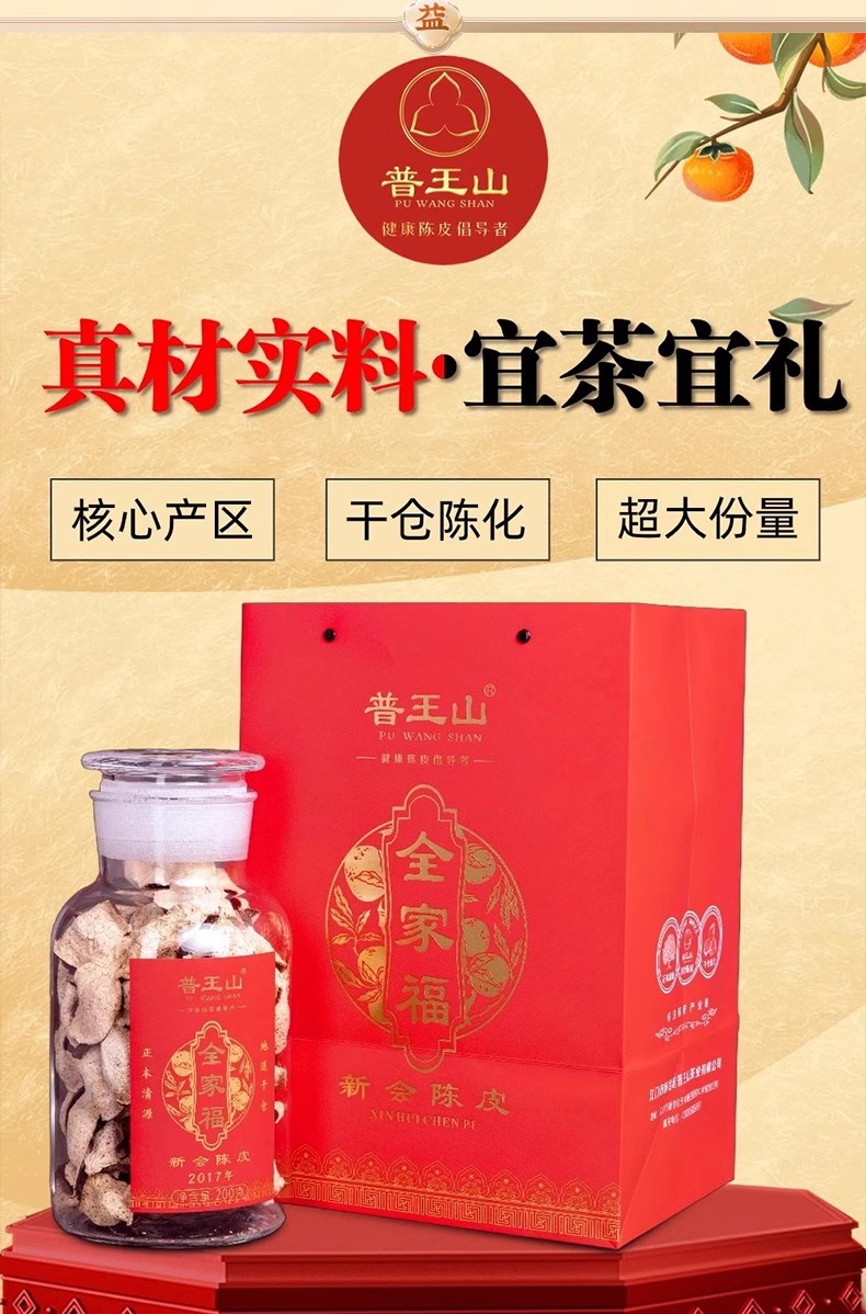 普王山新会陈皮2017全家福200g礼盒