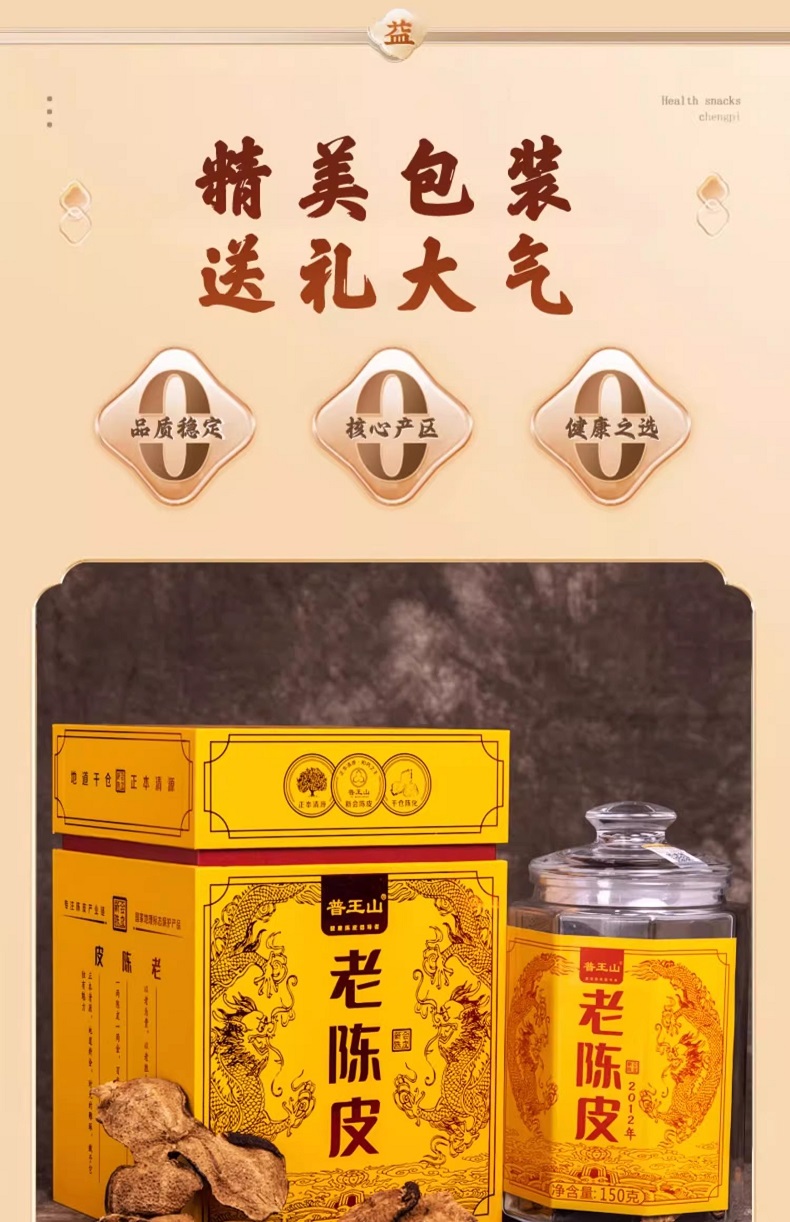 普王山新会陈皮2012年老陈皮150g礼盒